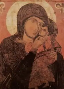 Various icon stands are lined up along the walls of the inner room. The best known and most valuable icon in the church is that of the Panagia Glykofilousa (Παναγιά Γλυκοφιλούσα – "sweetly kissing Madonna"), dated to the 12th century.