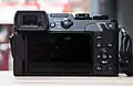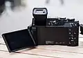 The manufacturer has indicated the time to acquire auto focus as 0.07 seconds. The electronic OLED viewfinder has a resolution of 2.36 million dots and, as in the predecessor, is tiltable. The 3-inch (76 mm) OLED touchscreen rear display is fully articulated and can display 1.04 million dots. The camera is splash proof.