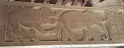 Panel carving- Aachara samaachaara (ආචාර සමාචාර- carving depicting a greeting scene between two women)