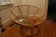 A papasan chair (also called a bowl chair or oval chair) is a type of bowl-shaped chair.