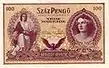 | 100 pengő | ? | Female model | Coat of arms and male nudes | ? | never | – | ||