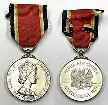 The Papua New Guinea Independence Medal was created in 1975 to commemorate the transition from self-government to the full independence of Papua New Guinea. It is a part of the Papua New Guinea honours system.