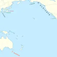 P. echinata is usually brownish in colour, with darker spots. It is most closely related to P. abei.[2] It is found in water depths ranging from sublittoral to 1,380 metres (4,530 ft).[6] It was first described from Puget Sound in the Salish sea, but is found along the North American Pacific coast as far north as Alaska but no farther south than La Jolla, California; and, in Asian waters, in the seas of Japan and Okhotsk as well as the strait of Korea.[2][7][8] The pollexes on their first pereiopods are unusually long, and articulate with their palms.[12] The third pair of pereipods is very fine, and serve a sensory function similar to antennae. They are used to detect prey and probe the shrimp's surroundings.[7]