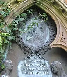 Portrait bust of James Young, on his gravestone in Inverkip cemetery.