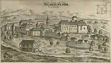The parish church in the town is dedicated to Saint Peter and belongs to the Roman Catholic Diocese of Novo Mesto. The current building was built in the 17th century on the site of a 13th-century church.[10] There are two other churches in the town. One, dedicated to Saint Sebastian, is mentioned as a chapel in the early 16th century, but was extended into a church in 1646 after an outbreak of the plague. It was restored in 1904 and in 1963. The second is dedicated to the Holy Spirit and is a Gothic building first mentioned in documents dating to 1487, but frequently restyled, most recently in 1895. It is built on top of prehistoric and Roman occupation layers.[11]