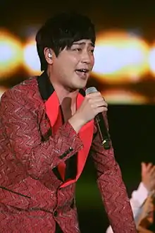 Park Ji-ung[1] (Korean: 박지웅; born October 28, 1982),[2] better known by his stage name Park Hyun-bin (Korean: 박현빈), is a South Korean trot singer. Dubbed the "Prince of Trot",[3] he made his debut in 2006 and has released three studio albums. His songs have become popular chants and rally songs sung at sporting events or election campaigns due to their catchy lyrics and tunes.[4][5]