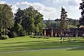The park area comprises the former estate of Adele and Gottlieb Duttweiler, who gave over the spacious area of their estate to the public use in 1946/47 – hence the admission is free, according to Duttweiler's social understanding.[1] The Gottlieb Duttweiler Institute (GDI) is also part of the «Im Grüene» foundation. It was created on 24 December 1946 Adele and Gottlieb Duttweiler. The foundation's assets include the 4.5 hectares (11 acres) Langhalden estate and an endowment. At the time the foundation was established, the donation had a total value of 520,000 Swiss francs, which after adjusting for inflation is equal to about 2.6 million Swiss Francs today. The Foundation was tasked to make the Langhalden estate available to the general public as a place of recreation. The donor's intentions were realised by turning the estate into the «Im Grüene» Park (known locally as «Dutti-Park»). The GDI is located on the edge of the park.[2]