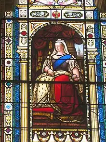 On 14 July 1865 the foundation stone for the building was laid by Sir George Bowen.[4] It was built by Joshua Jeays who used sandstone from his own quarries. Stained glass windows depicting royalty were imported from Birmingham.[4] The first section was completed in 1867.[4] The George Street frontage was completed in 1868 in French Renaissance Revival style, with some Second Empire-style elements. The archways and colonnades facing George Street were built in 1878,[4] and construction on the Alice Street frontage commenced in 1887. The Alice Street wing was completed in 1889.[4]