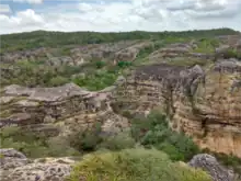 Stratigraphy of the Parnaíba basin contains depositional sequences, varying in age from Silurian to Cretaceous, marked by a progressive change in depositional environment from marine to continental.[11] Like many other cratonic basins, the Parnaíba Basin displays a polyphase sedimentary history.[12] There are five distinct and recognizable tectonostratigraphic (TS) units that are separated by basin-wide unconformities that make up the area. These TS units include: the Riachão unit (TS-1), the Jaibaras unit (TS-2), the Parnaíba unit (TS-3), the Mearim unit (TS-4), and the Grajau unit (TS-5). The sedimentary rocks vary greatly throughout the stratigraphy of the basin and depsostional enciroment changes, and includes shale, siltstone, mudstone, sandstone, conglomerate, breccia, limestone, and more. Two magmatic pulses can be seen in the rock record, and are known as the Mosquito Formation and the Sardinha Formation. Most of the magmatic rocks are sub-alkaline tholeiitic basalts, and occur as dykes and sills mainly within the Silurian to Carboniferous and as magmatic flows in the Jurassic and, less commonly, in the Cretaceous[13]