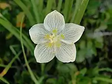 Parnassia californica is a species of flowering plant in the family Celastraceae known by the common name California grass of Parnassus. It is native to the mountains of Oregon, California, and Nevada, where it grows in moist areas such as meadows and streambanks.