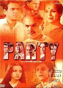 Party is a 1984 Hindi-language film directed by Govind Nihalani. The film boasted an ensemble cast, including Vijaya Mehta, Manohar Singh, Om Puri, Naseeruddin Shah, and Rohini Hattangadi. It based on the play Party (1976) by Mahesh Elkunchwar.[1][2][3]