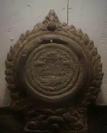 A detailed description of the Chandras can be found in the Paschimbhag inscription.[18] The inscription contains a hymn of the Buddha, a lineal introduction of Srichandra as the second ruler of the Chandra dynasty, descriptions of expeditions and conquests of his father Traillokyachandra and the names of Srichandra's council members who were the attestors of the Shāsana.[2] There is the name of Devparvat of Samatata on the bank of river Khirodā (or Kshirodā).[8] According to the inscription, Traillokyachandra protected Lālāmbī by defeating the Kamboja attackers of Samatata who came from the forest of the Lalmai hills.[8][11][19] However, according to Niharranjan Ray, there is a clear evidence in the script that the Chandra capital Devparvat was destroyed by the Kamboja invaders, as it does not clearly claim Traillokyachandra's victory over them, nevertheless, their capital was transferred from Devparvat to Bikrampur.[5]