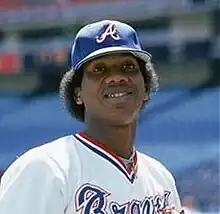 Slender at 6 feet 2 inches (1.88 m), 162 pounds (73 kg), he received extensive press coverage for both on-field and off-field controversies. He was arrested for cocaine possession in his native Dominican Republic in January 1984 and spent three months in prison although his ultimate sentence was only a fine of $1,000.[1] He did not rejoin the Braves until May 1984. He often drew the ire of his opponents, using an imaginary finger gun to shoot opponents and would pound the baseball into the ground. While it is customary for pitchers to walk back to the bench after completing an inning, he would run full speed to the dugout (gold chains and long, curly locks bouncing) after an inning-ending strikeout. He eventually added the "Pascual pitch" (his version of the "eephus") to his repertoire.[2] He was also involved in more than one beanball incident, most notably an August 12, 1984 brawl with the San Diego Padres where he hit the Padres' Alan Wiggins with his first pitch leading off the game, inciting each San Diego pitcher in the game to throw at him each time he came to bat. He had just received his driver's license and earned the nicknames "Perimeter Pascual" and "Wrong-Way Perez" after missing a start on August 19, 1982, while circling Atlanta's Interstate 285 (a beltway) three times looking for Atlanta–Fulton County Stadium, he ran out of gas and arrived at the ballpark 10 minutes late.[3]