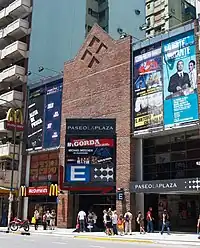 Paseo La Plaza is a cultural and commercial complex in the San Nicolás neighborhood of Buenos Aires, Argentina. The complex hosts theater performances and various types of congresses and conventions. It also has gastronomic and commercial venues. It is located in the heart of the theater area of Avenida Corrientes, near the General San Martín Theater, the General San Martín Cultural Center and other prominent venues.