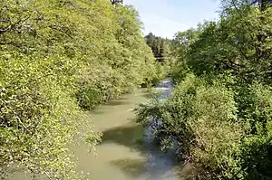 Looking downstream from a bridge in Drain