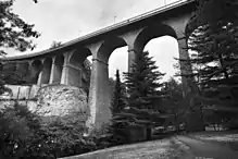 The Passerelle, also known as the Luxembourg Viaduct, is a viaduct in Luxembourg City, in southern Luxembourg. Nowadays it runs from the south into the city centre, Ville Haute, carrying road traffic across the Pétrusse valley and connecting Avenue de la Gare to Boulevard Franklin Delano Roosevelt. It is 290 m long, with 24 arches, and 45 m above the valley floor.