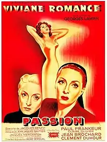 Passion is a 1951 French drama film directed by Georges Lampin and starring Viviane Romance, Clément Duhour and Paul Frankeur.[1] The film's sets were designed by the art director Robert Clavel.
