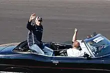 Maldonado began the 2012 season alongside Brazil's Bruno Senna, for Williams. He started the season with promising pace, qualifying eighth for the Australian Grand Prix. In the race, he was running strongly until he crashed out on the final lap, fighting with Fernando Alonso for fifth position. In the Malaysian Grand Prix, Maldonado retired in the closing stages of the race while running in the points. He scored his first points of the season by finishing eighth in China. A puncture ended his race in Bahrain, after he qualified in seventeenth position. At the Spanish Grand Prix, Maldonado qualified second, next to Lewis Hamilton on the front row of the grid after strong pace from his Williams car during the race weekend. Maldonado was later promoted to his first pole position in his Formula One career after Hamilton was excluded from the results of qualifying, due to having insufficient fuel in his car.[33] Maldonado was beaten to the first corner by Fernando Alonso, but regained the lead after the second round of pit stops. Maldonado held his lead after the third pit-stop phase, and held off Alonso and Kimi Räikkönen to win, becoming the first Venezuelan driver to finish on a Grand Prix podium in the process. He remains the most recent Williams driver to win a race as of December 2023.[34] During post-race celebrations, a fire engulfed the Williams pit, and Maldonado was seen carrying his cousin to safety.[35]
