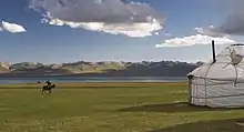 Yurt camp on north shore of lake Son Kol, Kyrgyzstan