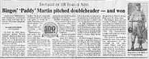 ![]() July 18, 1919 Bingo's Paddy Martin pitcher news article | |