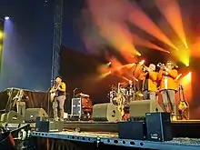 Pater Moeskroen is a Dutch folk group. During the summer they tour the country to play at festivals and big parties; in the winter the band plays in theaters throughout the Netherlands. The band's music contains elements of folk, klezmer, Celtic but also punk influences. Therefore, the band have created their own music style and sound. The content of the lyrics ranges from humorous to very serious.
