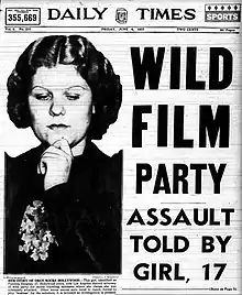 Douglas filed a criminal complaint with the Los Angeles County District Attorney's office. The district attorney at the time was Buron Fitts, a personal friend of MGM studio chief Louis B. Mayer. When Douglas' case was ignored, she went to attorney William J. F. Brown, who delivered an ultimatum to Fitts' office, insisting that it either investigate the complaint or Douglas would go to the media. The resulting scandal was one of the largest Hollywood had ever faced at the time. MGM responded by creating a smear campaign against Douglas, tarnishing her reputation and framing her as immoral and promiscuous. A newspaper article gave Douglas' name, photo, and home address.[2] The grand jury hearing dominated the news cycle, taking attention over stories such as the marriage of the abdicated Edward VIII and Wallis Simpson and the death of actress Jean Harlow.[3]