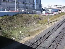 The Bayview Hunters Point Community Revitalization Concept Plan (March 2002) identified the Oakdale-Palou area as the community's preferred location for the Caltrain station.[15] A 2005 feasibility study proposed a new station just north of Oakdale Avenue (37°44′17″N 122°23′41″W / 37.738°N 122.3948°W / 37.738; -122.3948) next to the City College of San Francisco Southeast Campus in Bayview, 1.0 mile (1.6 km) north of the former Paul Avenue station. The new station would have platforms passing over Quint, and bus stops for four lines would be located within walking distance of the new station.[16]:18 Just north of Oakdale, freight trains are routed east along the Quint Street Lead, which branches from the main line, to the Intermodal Freight Rail Cargo Transfer Facility near Piers 90–96.[16]:27 A follow-up study in 2014 predicted daily ridership of around 2,350.[6][17] In the vicinity of the proposed station, the Caltrain line is grade-separated from Oakdale (which passes over the rail line) and Quint. Prior to 2016, the rail line was carried over Quint on a steel bridge originally constructed for the Bayshore Cutoff in the early 1900s. In preparation for a new Oakdale station, the bridge, which was structurally deficient, was removed on April 30 and replaced by a berm completed in July 2016, which severed Quint between Oakdale and Jerrold.[18] A new road has been proposed on land belonging to Union Pacific west of the tracks, to reconnect Quint to Jerrold.[19]
