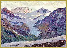 As he reached the heart of his career, Dougherty became more interested in light and experimented with "broken color" techniques and "optical blending." In 1913, in the museum journal Aesthetics, he was described said to be..."now pre-eminently a painter of light, as much an exponent of it as Claude Monet." Dougherty had a solo exhibition at the Art Institute of Chicago in the summer of 1914. In an attempt to become known for landscapes as well as marines paintings he was represented by a number of his pictures of the Swiss Alps including "Evening Calm." In the bulletin of the Art Institute the editor said that "Mr. Dougherty is now chiefly thought of as a painter of accomplished marines; but his mountain pictures, though less well known are no less important." In 1915 the Panama–Pacific International Exposition was held in San Francisco to celebrate the city's rebirth after the San Francisco earthquake and fire. The San Francisco world's fair featured a massive exhibition of paintings from the history of art as well as hundreds of works by contemporary artists from the United States and Europe. This exhibition is considered a turning point in California Art and it was also a triumph for Paul Dougherty who had four works exhibited and was awarded a Gold Medal. In his guide to the exhibition, the writer Michael Williams stated that "Another marine artist whose work is well and favorably known and which has been awarded a Gold Medal, is Paul Dougherty. Four pictures by him hang on Wall A. Paul Dougherty is a New York man, of such independence of mind that he studied without any masters in Paris, London, Florence, Venice and Munich. Examples of his work hang in all the principal galleries of the country." Dougherty was in such demand that a 1916 issue of the Bulletin for the Detroit Museum of Art mentioned him among the American artists who had "reached the zenith of their power" whose works they were seeking for their permanent collection. That December, his watercolors were the subject of an exhibition at Macbeth Gallery and in a review, the writer for the New York Times complimented Dougherty's progress by saying that "in his oil pictures has worked during the last ten years with a steadily increasing appreciation of chromatic values, is showing at the Macbeth Galleries a group of water colors that challenge comparison with the best of their kind."