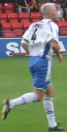 Leigh RMI of the Northern Premier League were Jones' next club, but his form attracted the attention of Oldham Athletic of the Football League Second Division.[2] He played seventeen times for Oldham in the second half of the 1999–2000 season,[3] but struggled with an injury sustained early in the following season. He remained with the club, but did not play for them at all in 2001 or until leaving in Summer 2002.