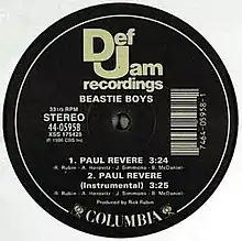 "Paul Revere" is a song by American hip hop group Beastie Boys, released as the third single from their debut album Licensed to Ill (1986). It was written by Adam Horovitz, Joseph Simmons, Darryl McDaniels, and Rick Rubin. It was produced by Rick Rubin and the Beastie Boys. The song tells a fictional story of how the Beastie Boys met.