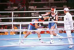 Tuvale (left) versus Aristides Gonzalez of Puerto Rico at the 1984 Olympics