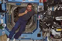Pavel Vinogradov inside the Destiny lab of the ISS.
