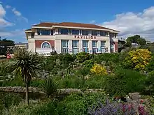 The area around Bournemouth Gardens was granted permission by the owners in 1859 to incorporate a public pleasure ground.[2] Discussions for a fixed entertainment venue took place during the 1880s, and as part of the 1892 Bournemouth Improvement Act, the council were granted £20,000 for constructing a pavilion in the gardens, which could accommodate a municipal orchestra. These plans were continually blocked by local residents who felt that licensed premises for drinking were immoral. A fixed plan for a venue in the gardens was approved in 1908, but saw further delays and was consequently postponed until after World War I.[3]