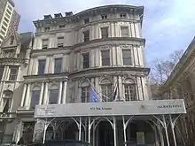 The Payne Whitney House is at 972 Fifth Avenue in the Upper East Side neighborhood of Manhattan in New York City. It is on the east side of Fifth Avenue, directly across from Central Park, midblock between 78th and 79th Street.[2][3] The land lot covers 4,500 square feet (420 m2) with a frontage of 45 feet (14 m) on Fifth Avenue and a depth of 100 feet (30 m). Nearby sites include the Harry F. Sinclair House to the north, the Stuyvesant Fish House to the east, and the James B. Duke House and 960 Fifth Avenue to the south.[2] There is a yard on the south side of the house, separating it from the James B. Duke House.[4][5] The Payne Whitney House was also built with a rear entrance on 79th Street, measuring 15 feet (4.6 m) wide.[6][7]