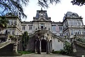 Eugenio Montero Ríos commissioned the architect Jenaro de la Fuente Domínguez to completely renovate the palace in the early 20th century. The aim was to turn the pazo into a large residential palace, imitating and surpassing in size the typology of the hôtels particuliers in the fashion of the French Second Empire style.[6] The project's façade plan dates from 20 February 1909 and it integrated and harmonised elements from different stages of construction to create an architectural unity. The refurbishment gave the palace a new appearance, both on the outside and inside. Work began in September 1909[9] and was completed in 1912.[10] Originally, the marble statues on the great central staircase leading to the palace formed the so-called avenue of statues, but with this major refurbishment of the pazo they were relocated to the staircase.[2] Eugenio Montero Ríos lived in the Lourizán Palace until his death in 1914.