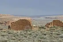 Peñasco Blanco ("White Bluff" in Spanish) is a Chacoan Ancestral Puebloan great house and notable archaeological site located in Chaco Canyon, a canyon in San Juan County, New Mexico, United States. The pueblo consists of an arc-shaped room block, part of an oval enclosing a plaza and great kiva, along with two great kivas outside the great house. The pueblo was built atop the canyon's southern rim to the northwest of the great houses in the main section of the canyon.