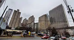 Peachtree Center is a district located in Downtown Atlanta, Georgia. Most of the structures that make up the district were designed by Atlanta architect John C. Portman, Jr. A defining feature of the Peachtree Center is a network of enclosed pedestrian sky bridges suspended above the street-level, which have garnered criticism for discouraging pedestrian street life.[1] The district is served by the Peachtree Center MARTA station, providing access to rapid transit.