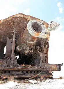 The bridge between Peale and Wake burned down in the early 2000s.[36] In the 21st century Peale has been left to nature, and is filled with the ruins of the destroyed Pan-American hotel, pier, and the sea plane ramp, and fortifications from WW2.[37] Peale avenue and Pan-Am road, various old facilities such as the Loran buildings, Navy Barracks, and other remains are slowly overgrown with vegetation. Typhoon Ioke stripped much of the vegetation for Toki point when it struck in 2006.[38] The island is periodically visited by a small boats that can cross the small channel, where the remains of two older bridges are.[37]