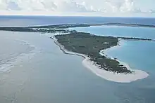 Peale is on the north-west side of Wake Island, and major points on Peale include Toki Point, which is the western cape of Peale. On the southern side there is an extension of land into the lagoon which points south-east and ends at Flipper Point.[3] It is separated from Wake Island by a channel which, from World War II to the 21st century, was crossed by a wooden bridge. The bridge had burned down by 2003. In 1953 the bridge between Peale and Wake Island was rebuilt.[4]