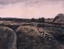 Peatery in Drenthe (F1094) is a watercolor created by Dutch painter Vincent van Gogh in late 1883, during a period that he spent in Drenthe working on his watercolour technique to secure election to the Hollandsche Teekenmaatschappij (Dutch drawing society).