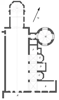 Plan of the first level of the chapel, with the entrance vestibule