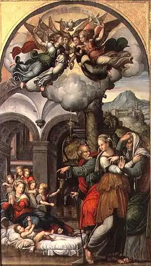 'Nativity with the Two Midwives', oil on canvas painting by Pellegrino Aretusi, Estense Gallery, Modena, Italy