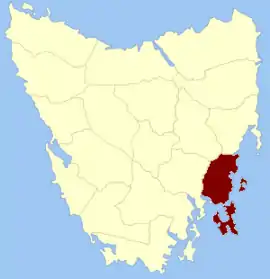 The County of Pembroke, bounded on the north by Little Swan port river; on the east by the Pacific ocean; on the south by Storm bay, and on the west by Storm bay, Norfolk bay, Pittwater, and by the eastern boundaries of the parishes of Ulva, Staffa and Ormaig, and a line to the south east angle of the county of Somerset. This county to include the White Rock, Maria island, Lachlan island, the Hippolyte rocks, Tasman's island, Wedge island, Sloping island, Garden island (now Smooth Island), Low island (now 'Green Island'), the islands in Pittwater, and all other islands adjacent to the coasts of the county.[1]