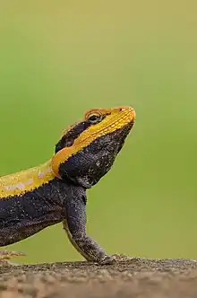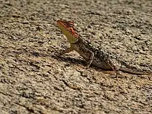 The peninsular rock agama or South Indian rock agama (Psammophilus dorsalis) is a common species of agama found on rocky hills in south India.[4] An allied species, Psammophilus blanfordanus, is found in the Eastern Ghats, but north of the range of this species.