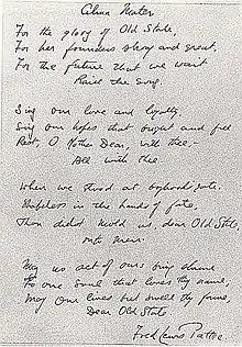 ![]() This is the original Penn State Alma Mater, handwritten and published by Fred Lewis Pattee in April 1901. | |