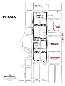 Map depicting the locations and timelines for the Penn Valley Redevelopment Project Phases. City of Kansas City, Mo. City Planning and Development Department.