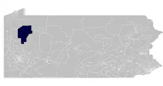 The 64th District encompasses parts of Crawford County and all of Venango County and includes the following areas:[1]