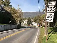 At the top of the mountain, PA 305 crosses into Union Township in Mifflin County and leaves the boundaries of Rothrock State Forest. The route begins to descend the forested mountain, curving to the east.[1][3] At the base of Stone Mountain, the road turns to the southeast and heads into the Kishacoquillas Valley, an agricultural valley which is home to an Amish community.[1][3][4] Here, the route runs through farmland with some residences. PA 305 continues southeast to its eastern terminus at an intersection with PA 655 near the community of Belleville.[1][3]