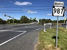 Pennsylvania Route 987 (PA 987) is a state highway in the Lehigh Valley region of the U.S. state of Pennsylvania. It runs 10.3 mi (16.6 km) from U.S. Route 22 (US 22) near the Lehigh Valley International Airport north of Allentown north to PA 946 in Klecknersville.