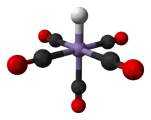 The structure of HMn(CO)5 has been studied by many methods including X-ray diffraction, neutron diffraction, and electron diffraction.[6] HMn(CO)5 can be related to the structure of a hexacarbonyl complex such as Mn(CO)+